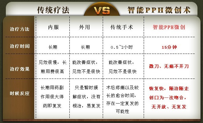 而目前有些痔疮患者不上医院治疗,主要是担心术后发作,久治不愈。确实,传统手术治疗痔疮隐患多,它采取纵切方式,由里到外,一般是多哪块切哪块,但过一段时间未切除的又会出来。另外还有可能引起轻度失禁、漏气、漏粪等后遗症,术后还会伴有便血、疼痛、3至4周的愈合时间,且易发作。正是这些缺点让患者对治愈自己的病患失去信心。